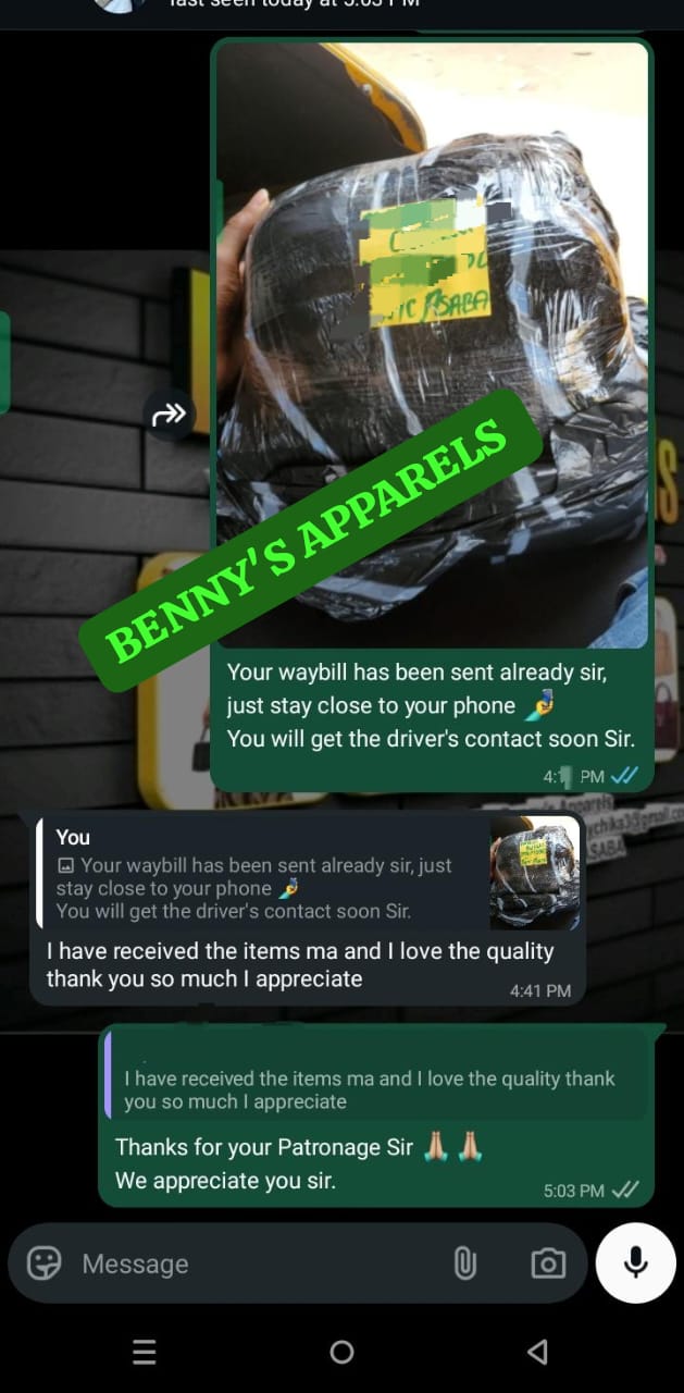 Join the BENNY’S APPARELS Buyers Group now to get early updates on available bundles, price offers, and delivery schedules before current stock finishes.